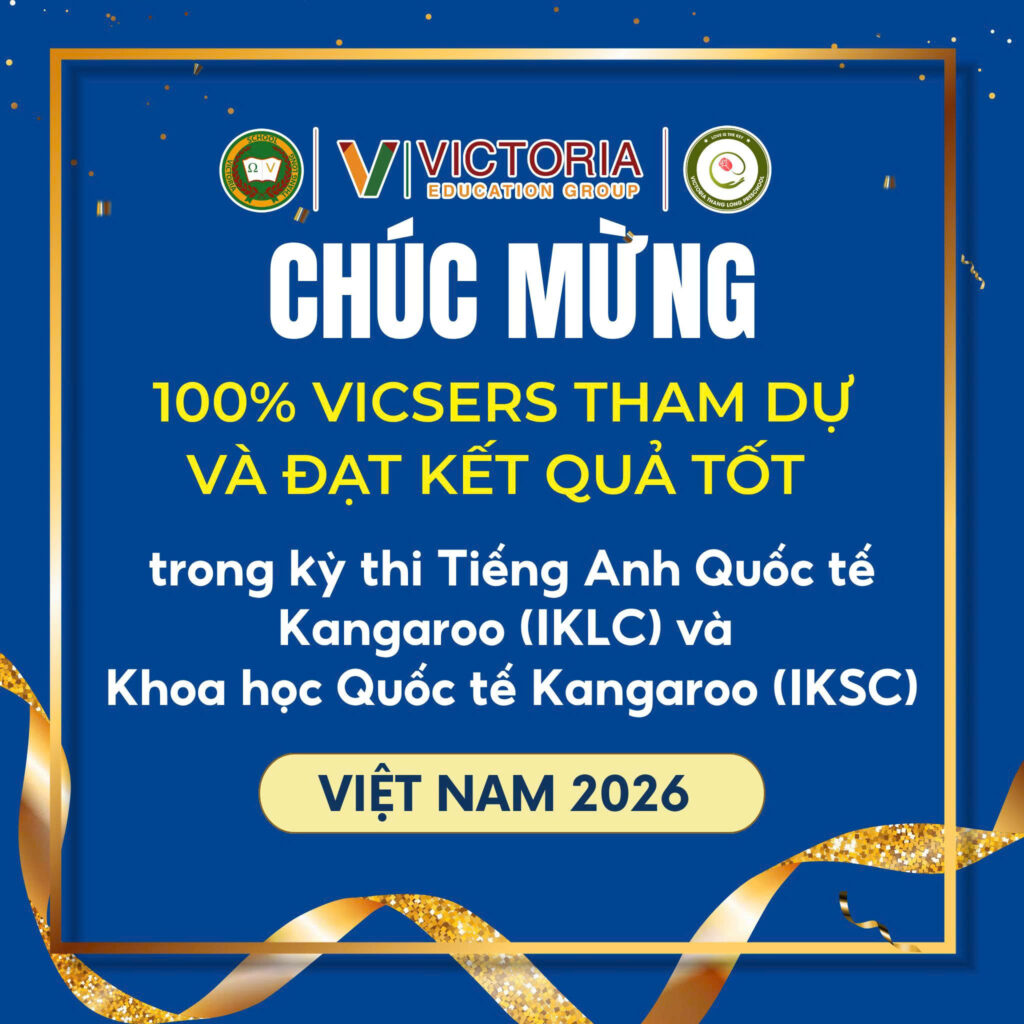 Trường TH & THCS Victoria Thăng Long 3 chúc mừng các học sinh đã tham gia và đạt kết quả tích cực tại Vòng 1 Kỳ thi Tiếng Anh Quốc tế Kangaroo và Khoa học Quốc tế Kangaroo Việt Nam 2026, với thành tích 100% học sinh dự thi đều đạt kết quả tốt.