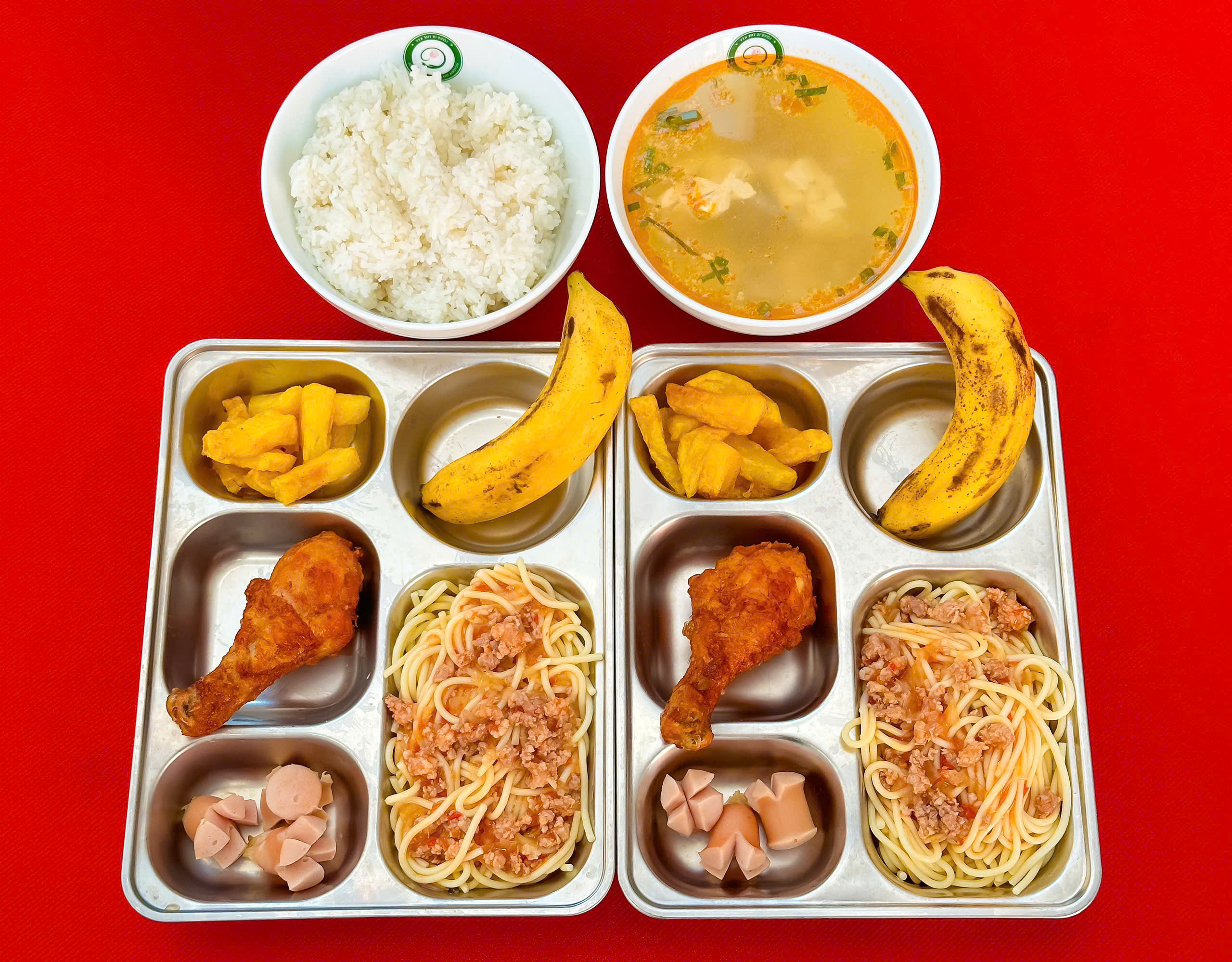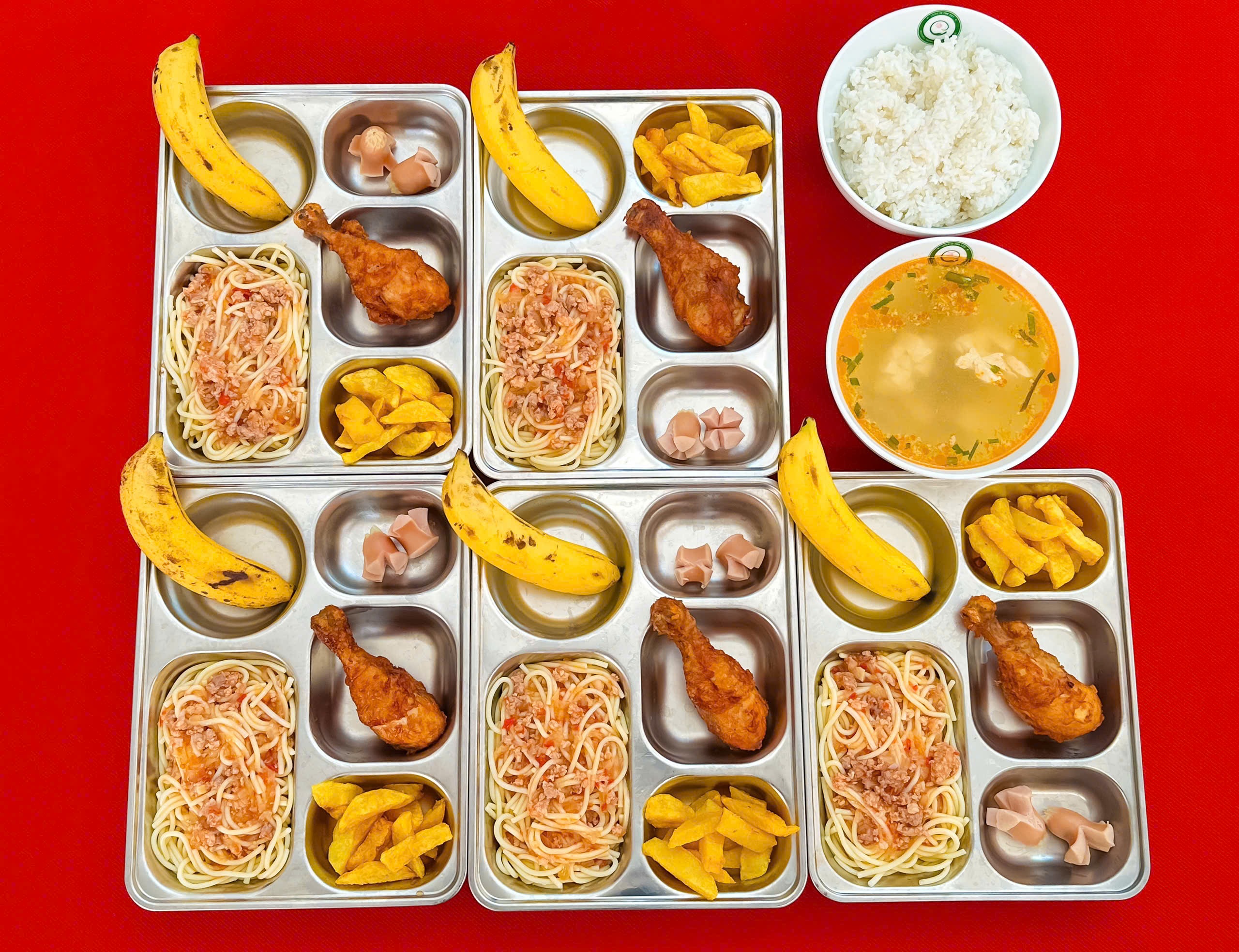 Các suất ăn được chuẩn bị chu đáo, chia khẩu phần hợp lý giữa các khối lớp, giúp học sinh có năng lượng học tập, vui chơi và tham gia các hoạt động ngoại khóa một cách hiệu quả.
