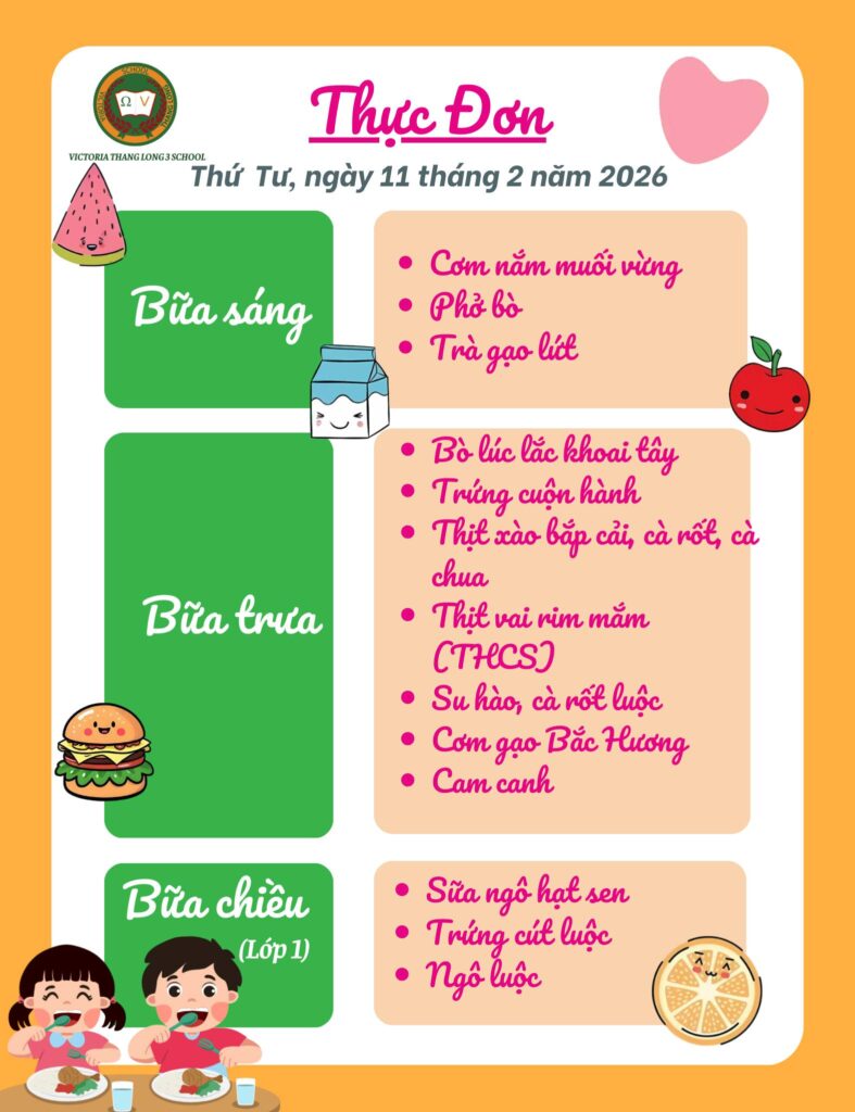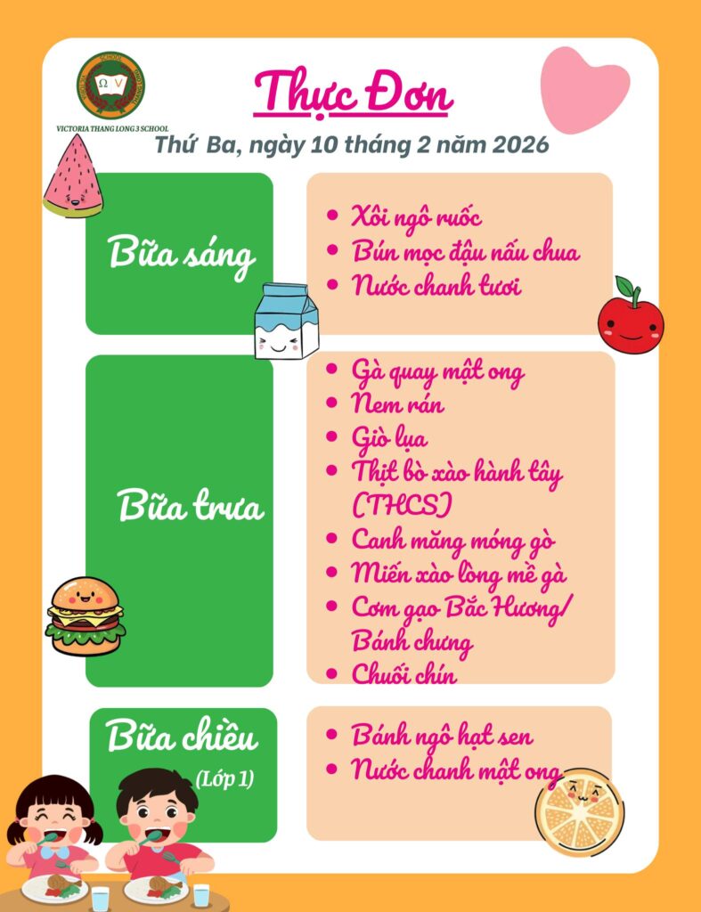 THỰC ĐƠN HỌC ĐƯỜNG – CÂN BẰNG DINH DƯỠNG, TRÀN ĐẦY NĂNG LƯỢNG Tại Trường TH&THCS Victoria Thăng Long 3, mỗi bữa ăn đều được xây dựng khoa học nhằm đảm bảo học sinh được cung cấp đầy đủ dưỡng chất cho một ngày học tập hiệu quả và vận động tích cực. Thứ Tư, […]