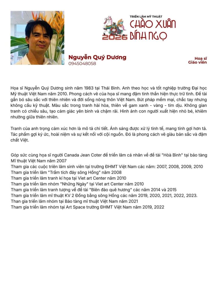 🌿 CHÚC MỪNG THẦY NGUYỄN QUÝ DƯƠNG – GIÁO VIÊN MỸ THUẬT VICTORIA THĂNG LONG 3 VỚI BUỔI TRIỂN LÃM TRANH SẮP DIỄN RA NGÀY 23/1/2026 🎨