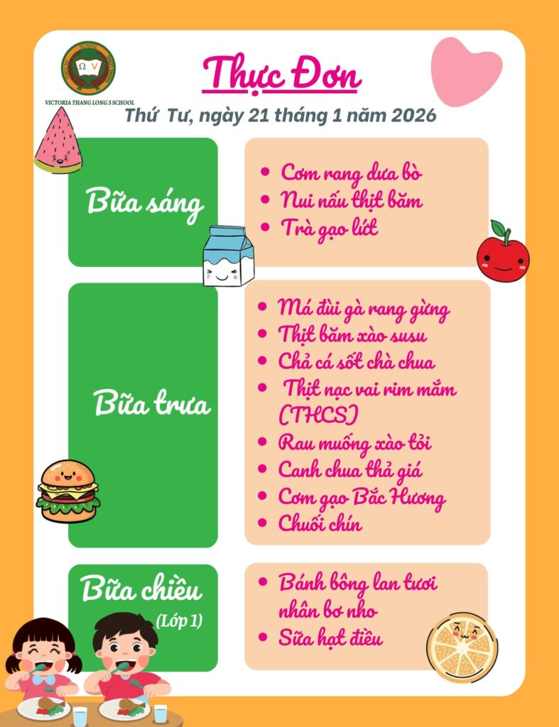 Thực đơn Thứ Tư ngày 21/1/2026