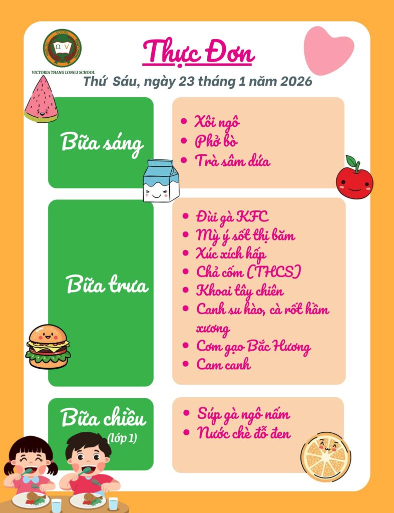 Thực đơn Thứ Sáu ngày 23/1/2026