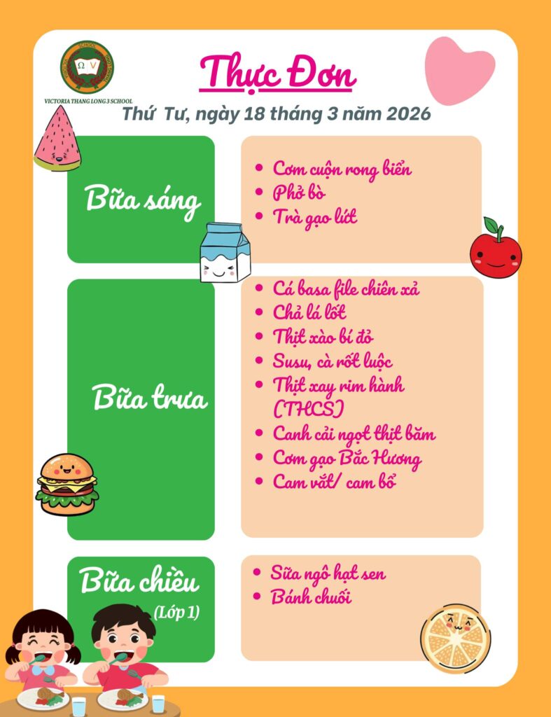 Thực đơn Thứ Tư, ngày 18/03/2026