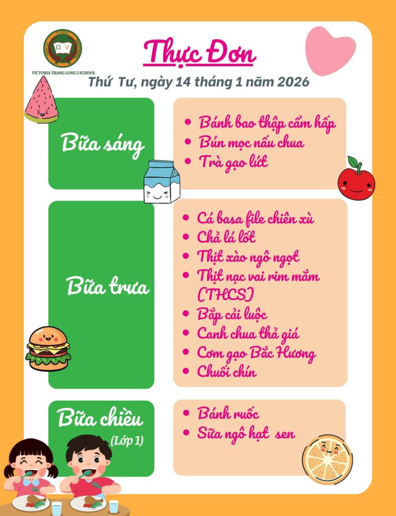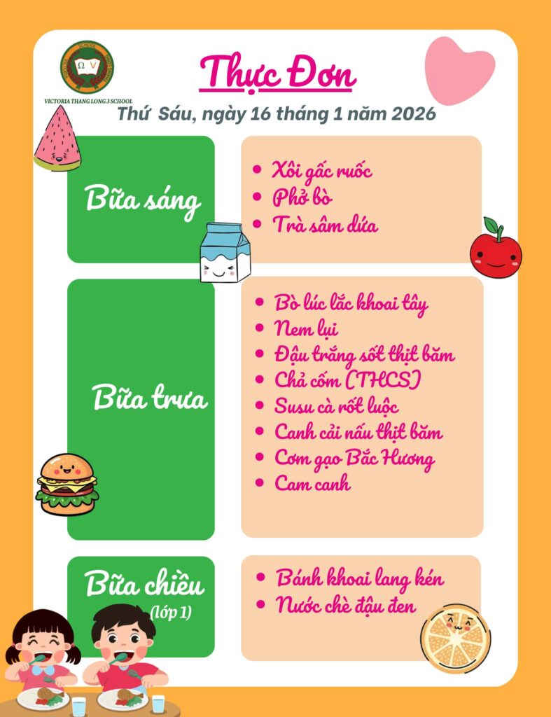 Thực đơn Thứ Sáu ngày 16/1/2026