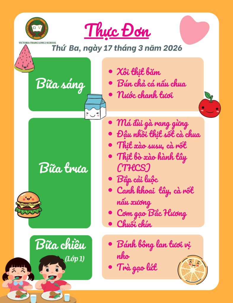 Thực đơn Thứ Ba, ngày 17/03/2026