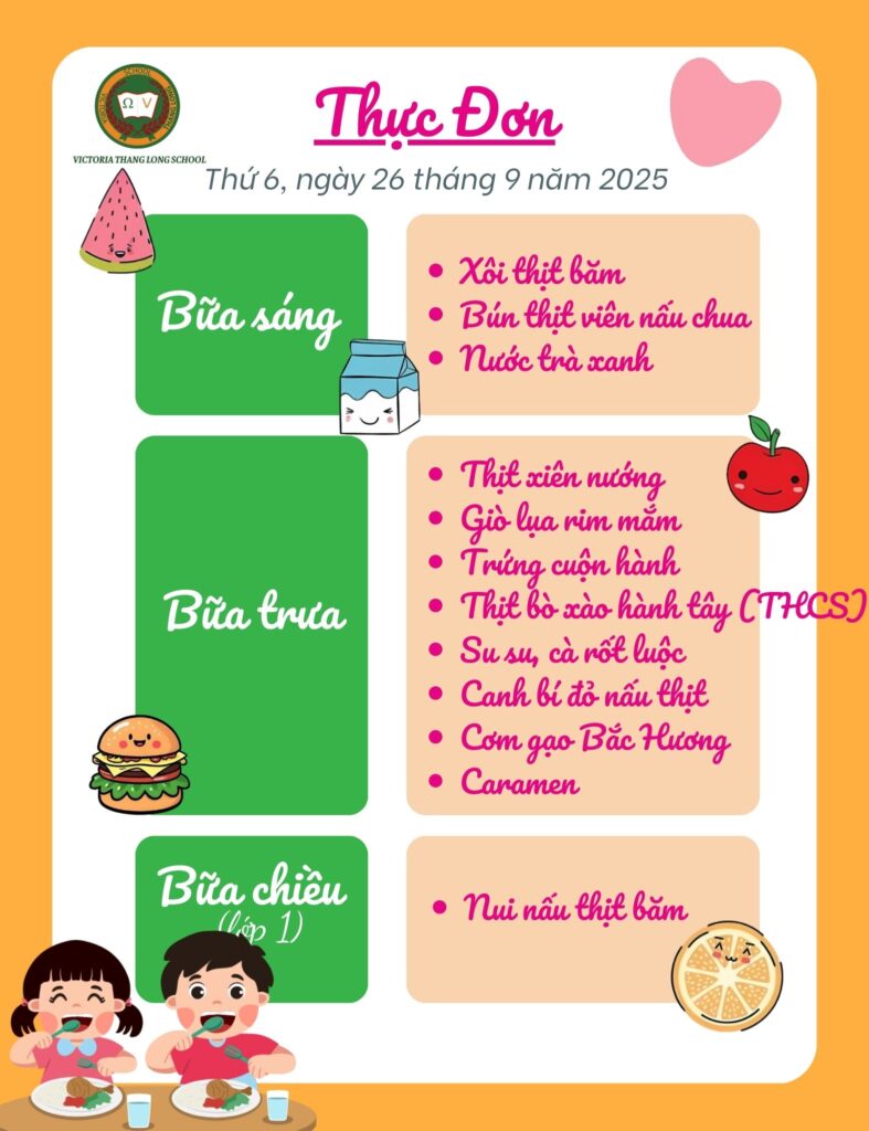 Thực đơn Thứ Sáu ngày 26/09/2025