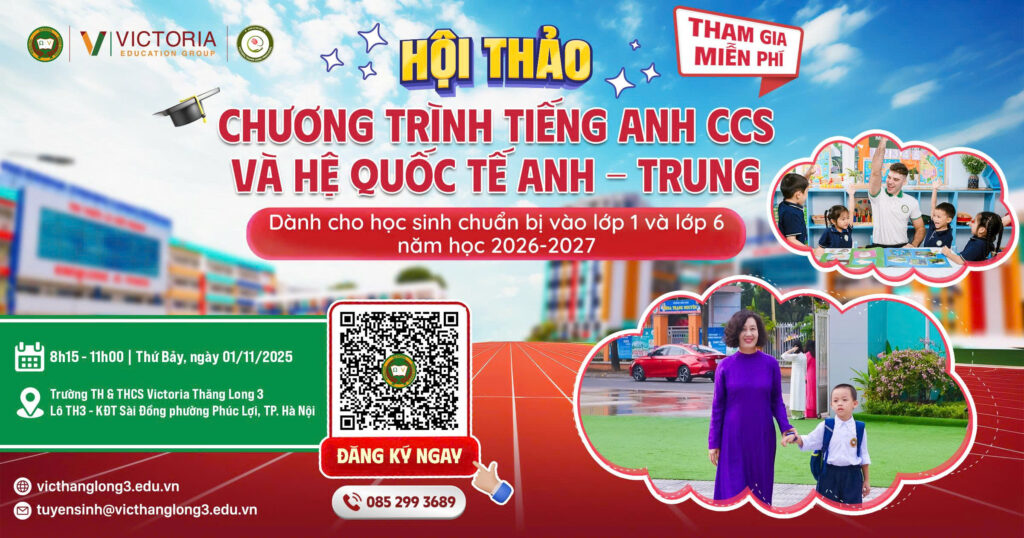 Trong năm học 2026 – 2027, Trường Tiểu học & THCS Victoria Thăng Long 3 đẩy mạnh phát triển chương trình Tiếng Anh CCS, đồng thời triển khai Hệ Quốc tế Anh – Trung nhằm mang đến cơ hội cho học sinh được học song song hai ngoại ngữ: Tiếng Anh và Tiếng Trung ngay […]