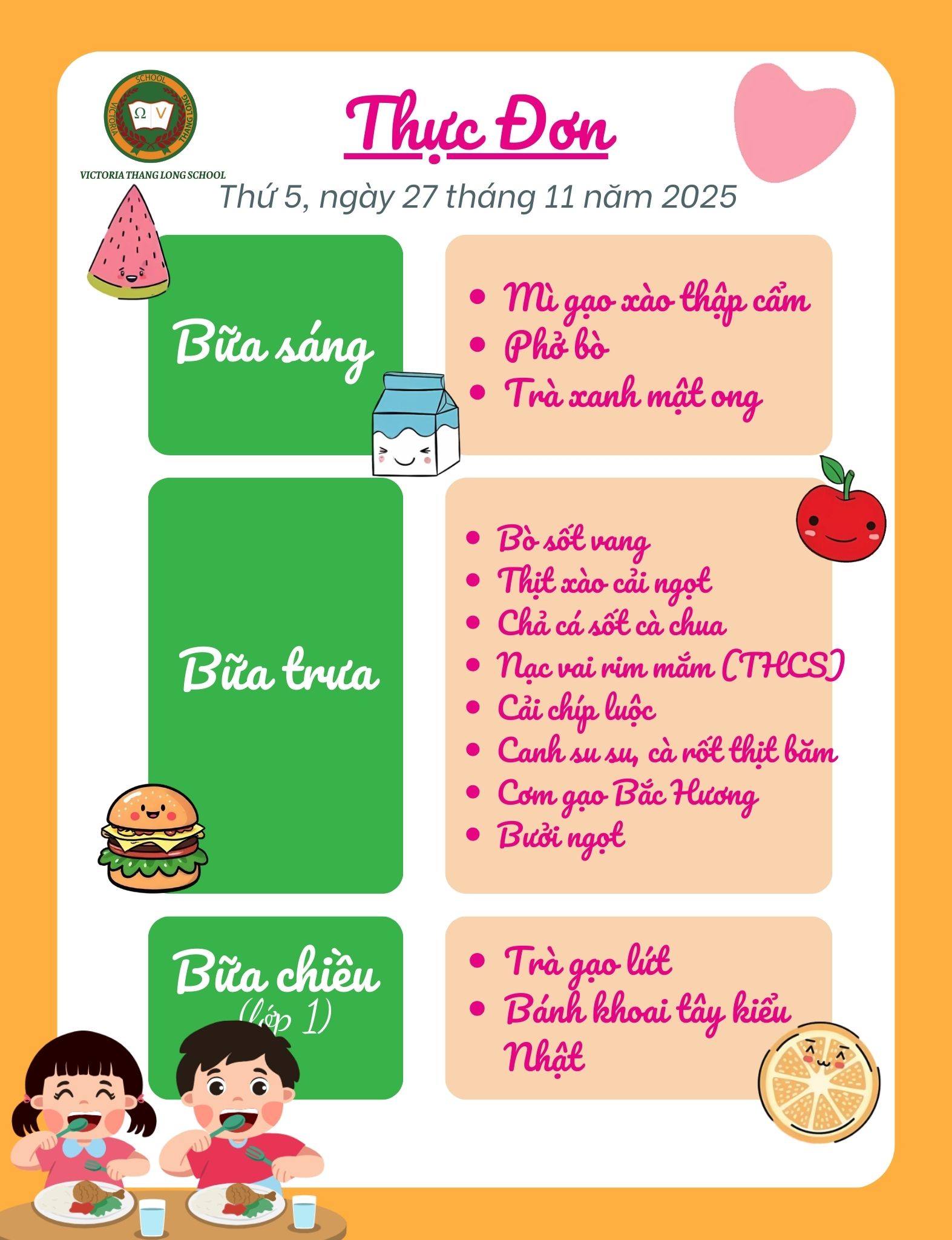 Với tiêu chí “Bữa ăn học đường vì sức khỏe, vì sự học tập và phát triển của học sinh” Victoria Thăng Long đồng hành cùng Ba Mẹ trong hành trình nuôi dưỡng những thế hệ học sinh tự tin, hạnh phúc “Ăn vóc, học hay”, “Ăn sạch, sống xanh, thực hành lòng biết ơn” và tràn đầy năng lượng tích cực mỗi ngày đến trường.