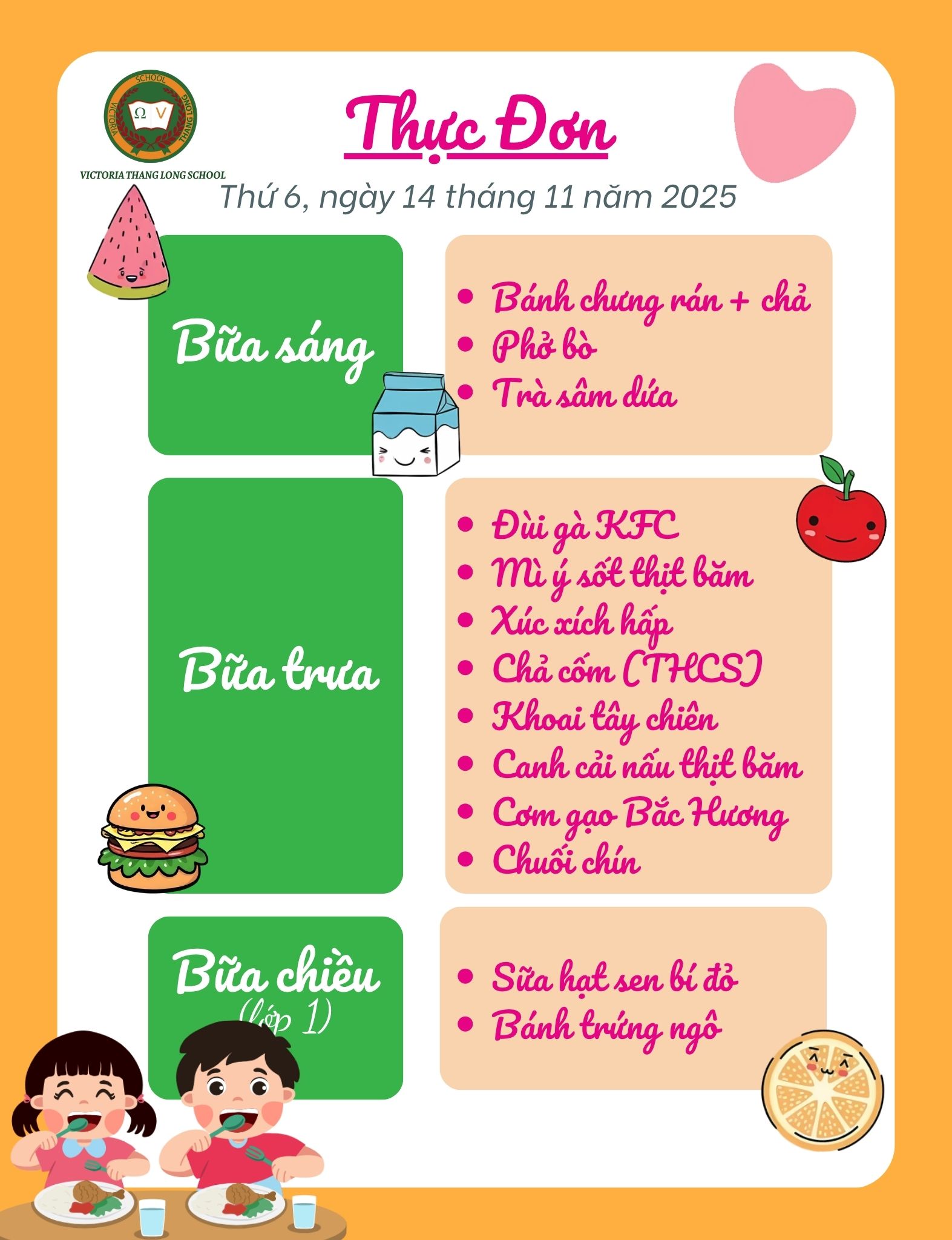 Thực đơn Thứ Sáu ngày 14/11/2025
