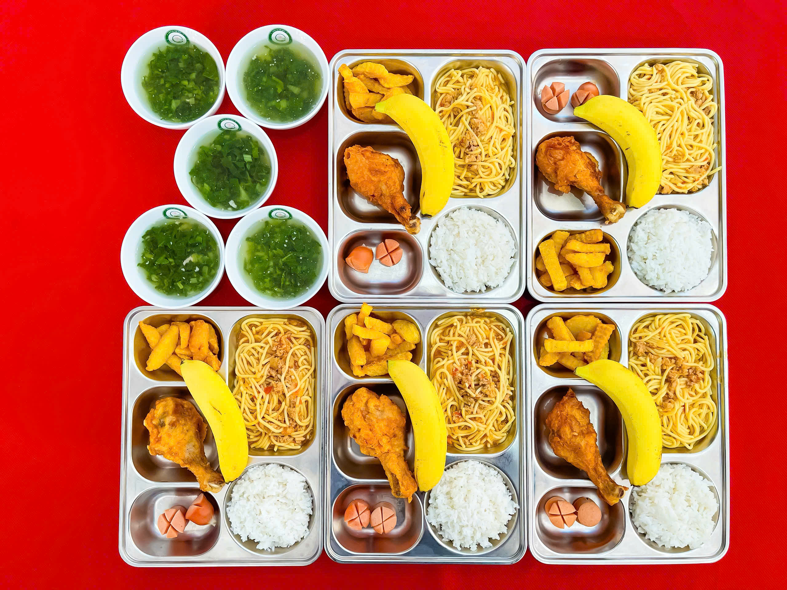 Các suất ăn được chuẩn bị chu đáo, chia khẩu phần hợp lý giữa các khối lớp, giúp học sinh có năng lượng học tập, vui chơi và tham gia các hoạt động ngoại khóa một cách hiệu quả.