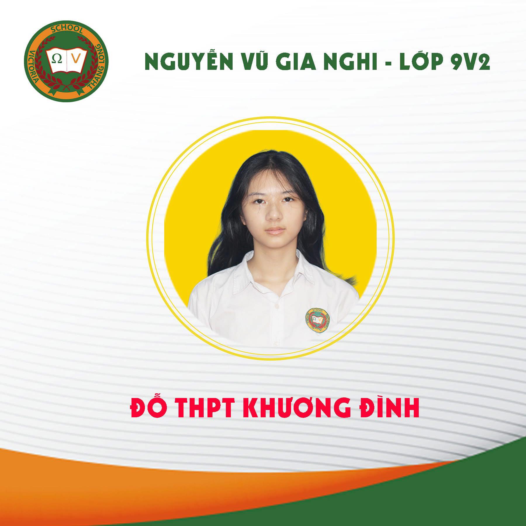 21. Nguyễn Vũ Gia Nghi lớp 9V2 đỗ trường THPT Khương Đình