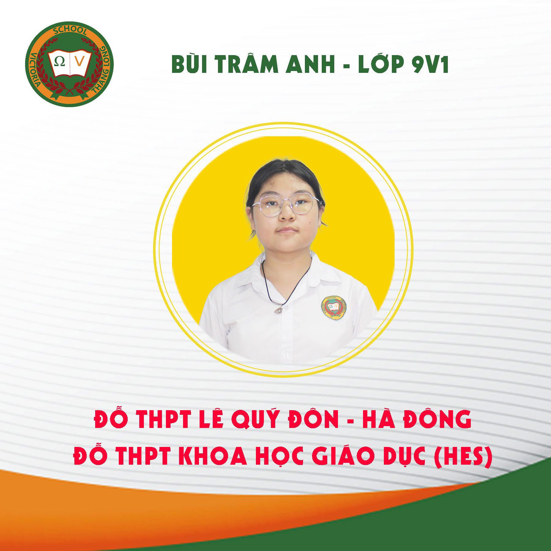 2. Bùi Trâm Anh lớp 9V1 đỗ trường THPT Lê Quý Đôn – Hà Đông; THPT Khoa học Giáo dục (HES)