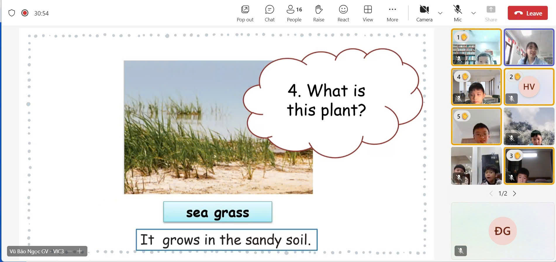 Grade 4V1: Praiseworthy for their proactive and disciplined learning. The students consistently followed excellent online etiquette: keeping cameras on attentively, listening carefully, speaking eagerly, and turning microphones on/off at the right time. This is clear evidence of the maturity and self-discipline of our primary students.