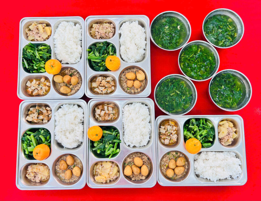 Các suất ăn được chuẩn bị chu đáo, chia khẩu phần hợp lý giữa các khối lớp, giúp học sinh có năng lượng học tập, vui chơi và tham gia các hoạt động ngoại khóa một cách hiệu quả.