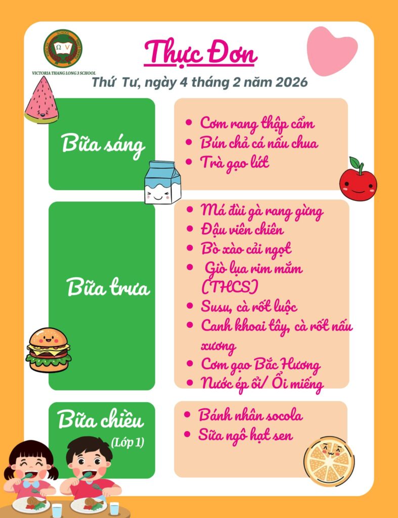💪 Với tiêu chí “Bữa ăn học đường vì sức khỏe, vì sự học tập và phát triển của học sinh” Victoria Thăng Long đồng hành cùng Ba Mẹ trong hành trình nuôi dưỡng những thế hệ học sinh tự tin, hạnh phúc “Ăn vóc, học hay”, “Ăn sạch, sống xanh, thực hành lòng biết ơn” và tràn đầy năng lượng tích cực mỗi ngày đến trường.